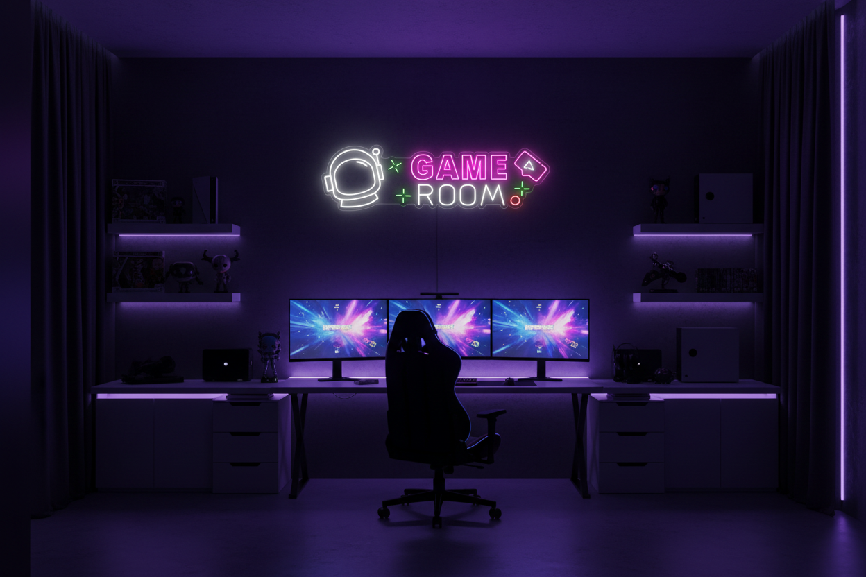 Level up your gaming room's aesthetics. Our neon signs add a cool, retro vibe, setting the stage for epic gaming adventures.